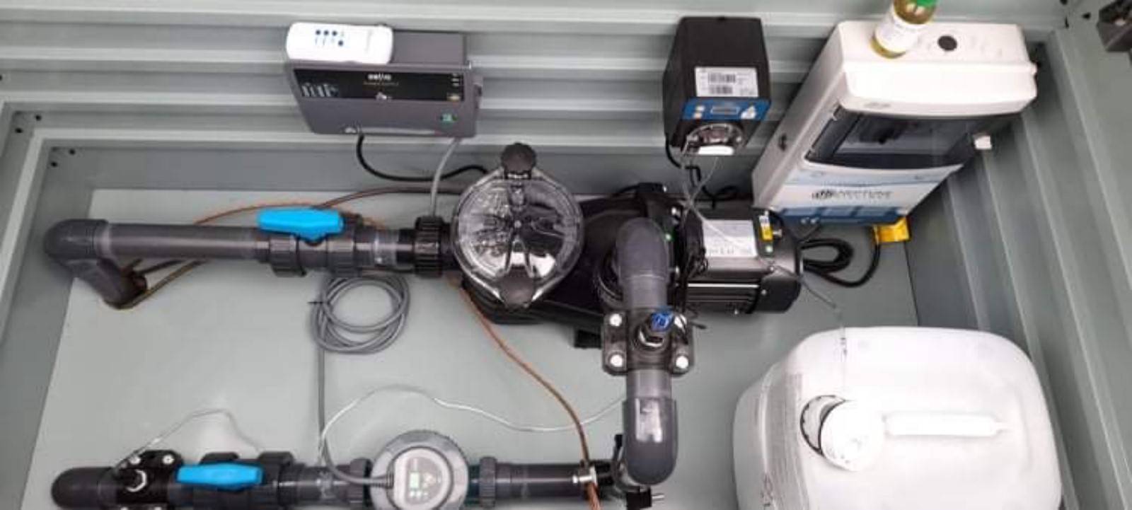 Plus besoins de beaucoup de place, ni de grand local technique, nous proposons des filtrations évolutives et plus simple à utiliser pour nos clients qui se rangent facilement dans des box, coffre de jardin ou même sous une cuisine d'été. Comme sur les photos nous pouvons toujours rajouter des options comme le pack traitement au sel ou une pompe à chaleur, etc .