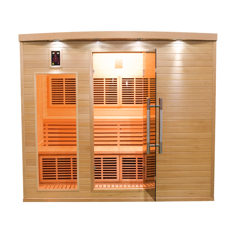 Cette gamme de saunas infrarouge est équipé de panneaux en carbone qui diffusent les rayons infrarouges. Les panneaux ont été placés sur les parois au niveau des bancs et des sols, pour permettre de diffuser une chaleur douce et agréable de façon uniforme. Son design classique et naturel en épicéa du Canada rendent ce modèle incontournable. Ses lignes sont soulignées par un éclairage d'ambiance très chic.