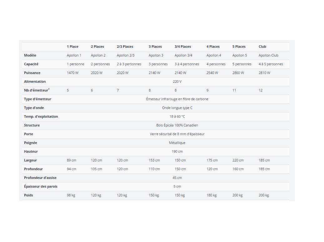 Les saunas Apollon sont disponibles de 1 place à 5 places ainsi qu'en modèle Club à partir de 1707 euros.