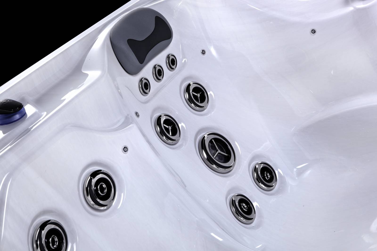 Sur les mêmes dimensions que le modèle Cuba, ce spa carré offre une disposition différente, avec 3 places assises et 2 places allongées.