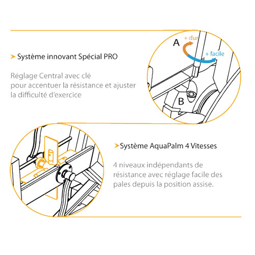 - système Aquapalm 4 vitesses, 4 niveaux indépendants de résistance.