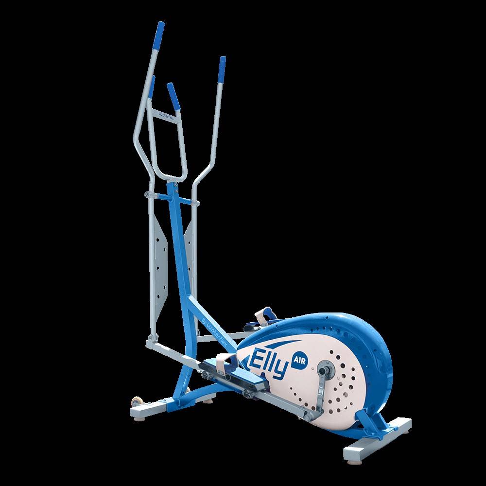L'Elly offre à ses utilisateurs une fluidité du mouvement et permet un travail optimal des jambes grâce à l’inclinaison des pédales. L'effort est renforcé par des bras de leviers oscillants associés à des pales larges perforées. L'Elly crée alors une résistance sans blocage ni à-coups. 100% en acier inoxydable, le Elly est compatible avec tous types d’eau (eau de mer, eau chlorée ou brome). Ses roues en silicone rendent son déplacement très facile.